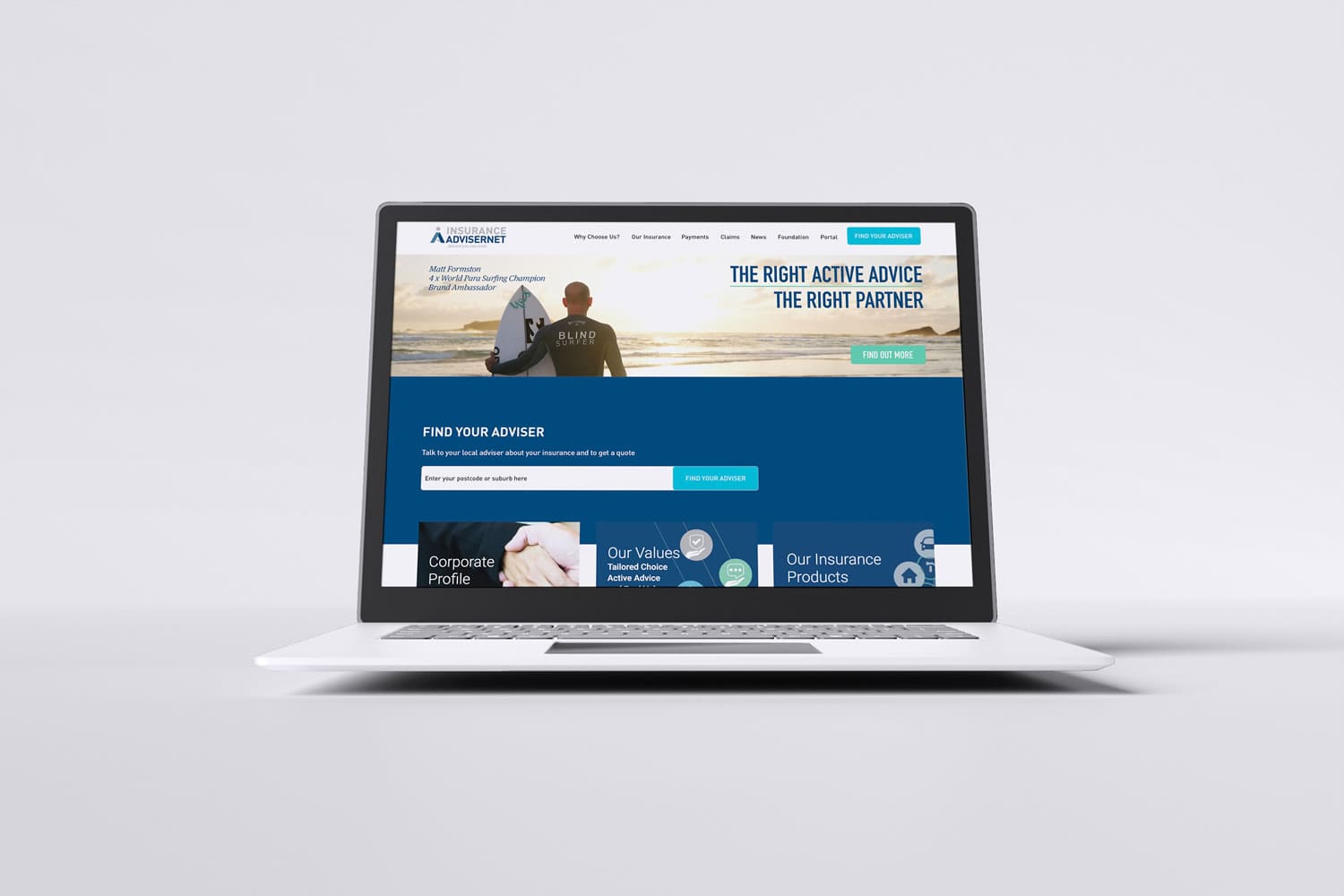Insurance Advisernet’s long-held promise of ‘Advice you can trust’ is backed by a proactive culture, with advisers anticipating what’s ahead and staying on the front-foot. The idea of Active Advice became the basis for a documentary-style content campaign featuring blind surfer, Matt Formston, who relies heavily on his team of advisers to succeed.